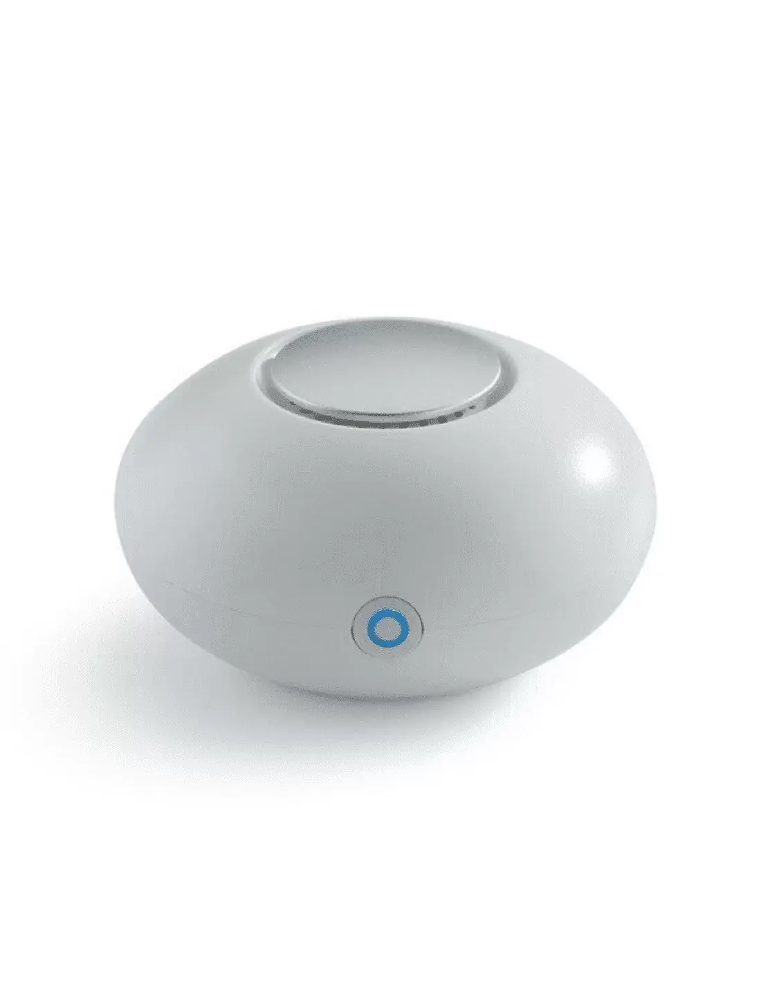 Vista frontal del microgenerador de ozono de bolsillo con botón de encendido