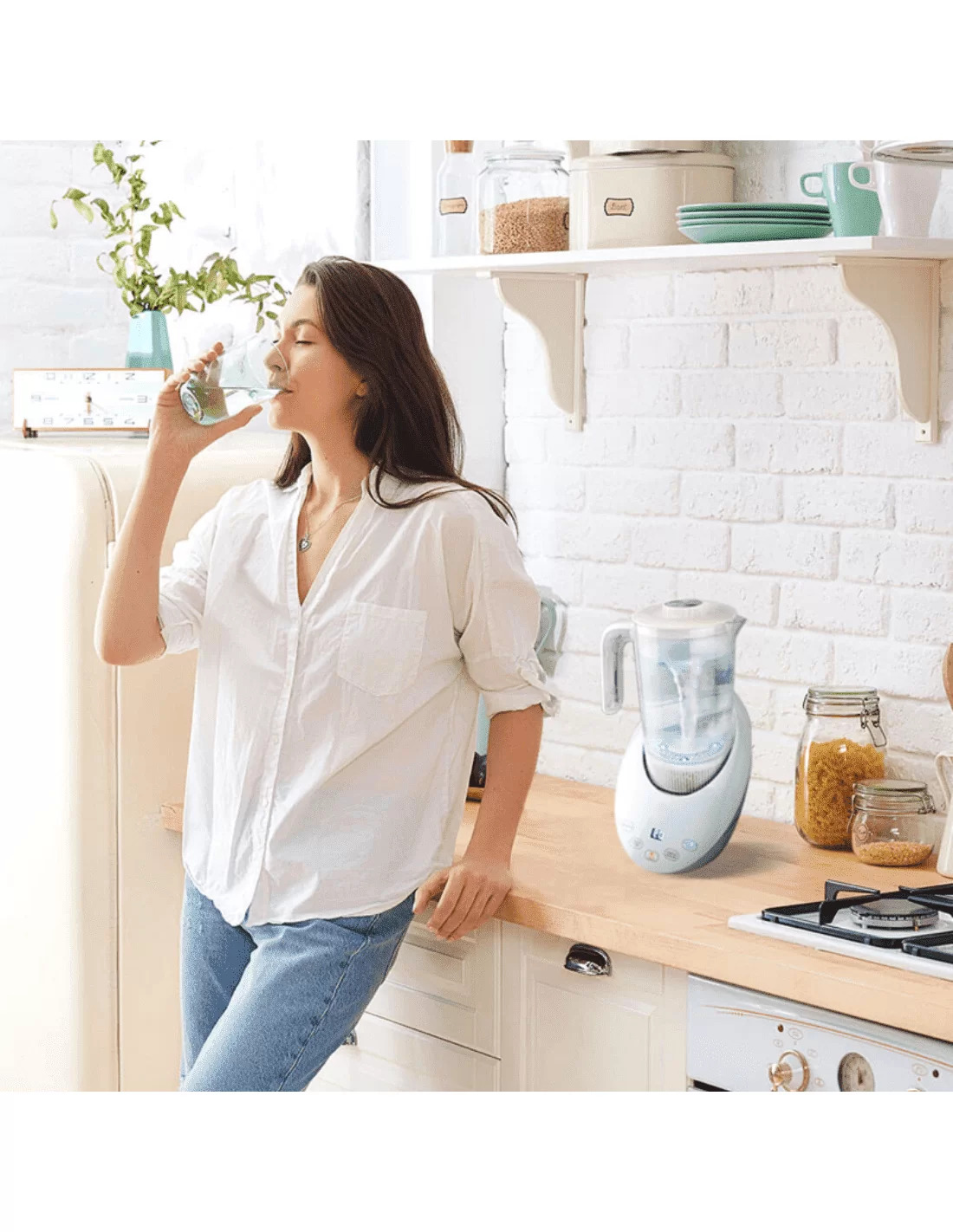 La electrólisis realizada por la jarra convierte el agua en una fuente potente de antioxidantes, ayudando a combatir el estrés oxidativo y el envejecimiento prematuro. Su filtro mineralizador no solo mejora el pH del agua, sino que también asegura su pureza y calidad.