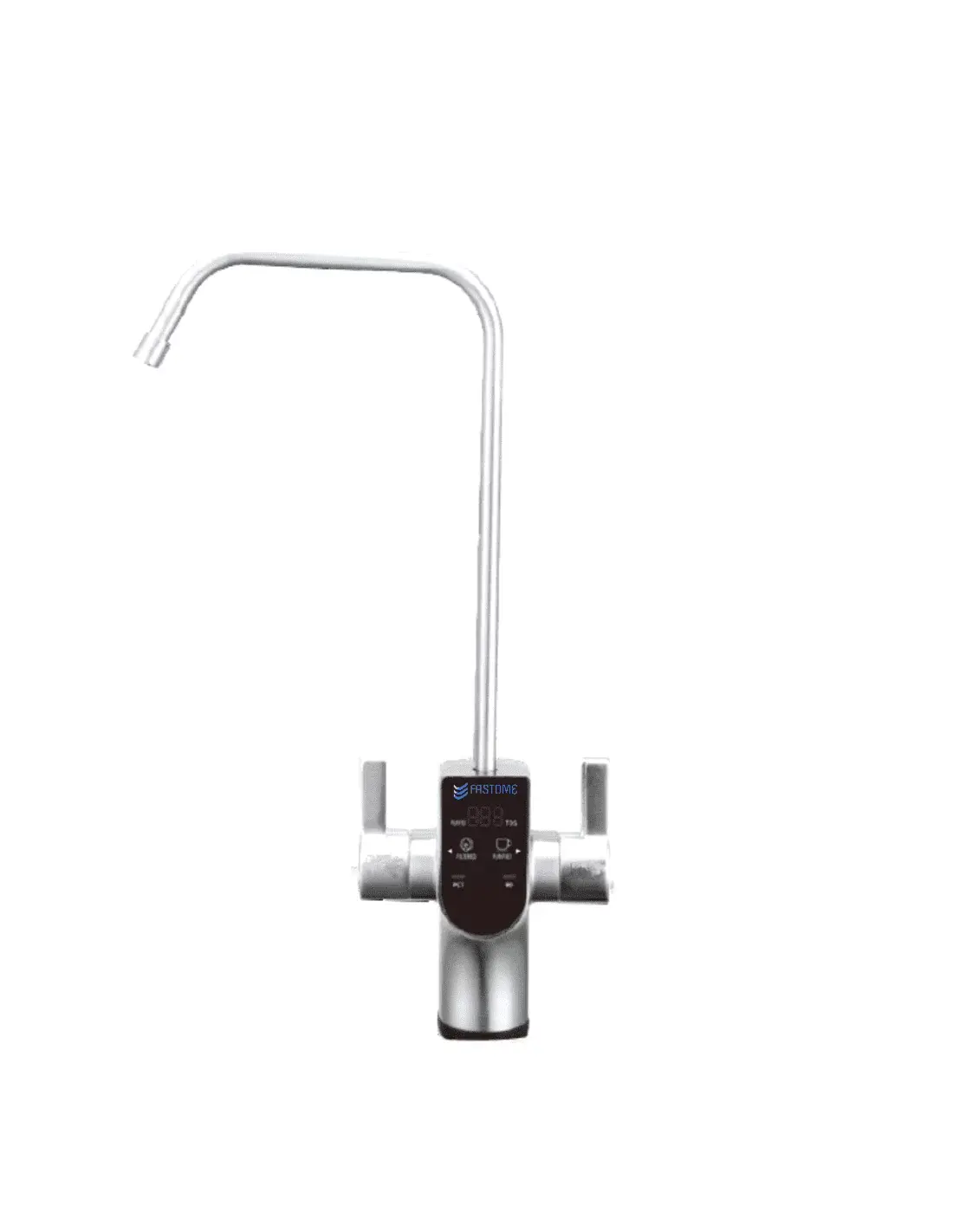 - Grifo de 2 Vías con Pantalla Digital: Permite seleccionar entre agua de mineralización media o débil, y monitorear el TDS y el estado de los filtros.