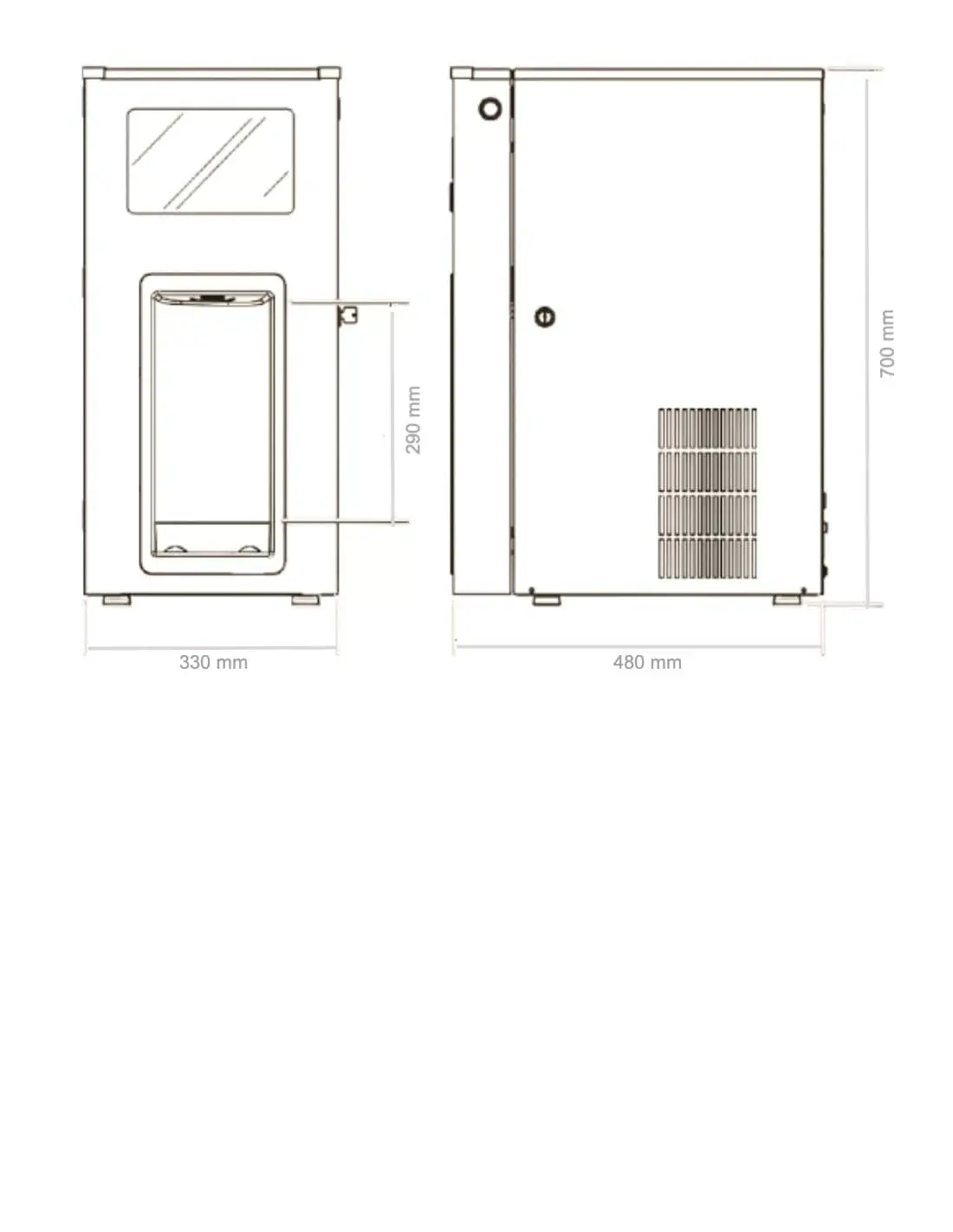 - Dimensiones: 480 mm x 330 mm x 700 mm.