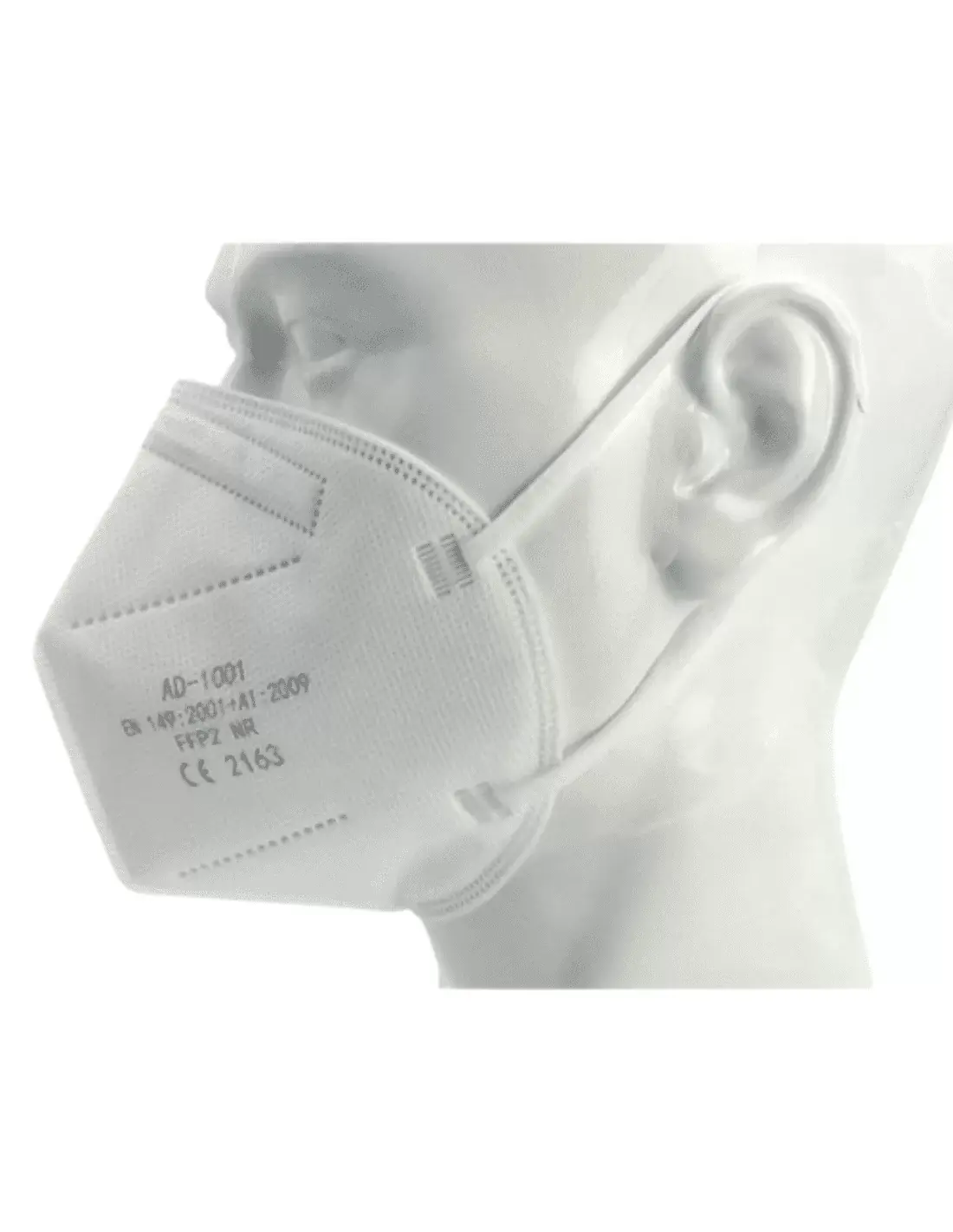 FFP2 NR First Protec mask fitted to the face with elastic band