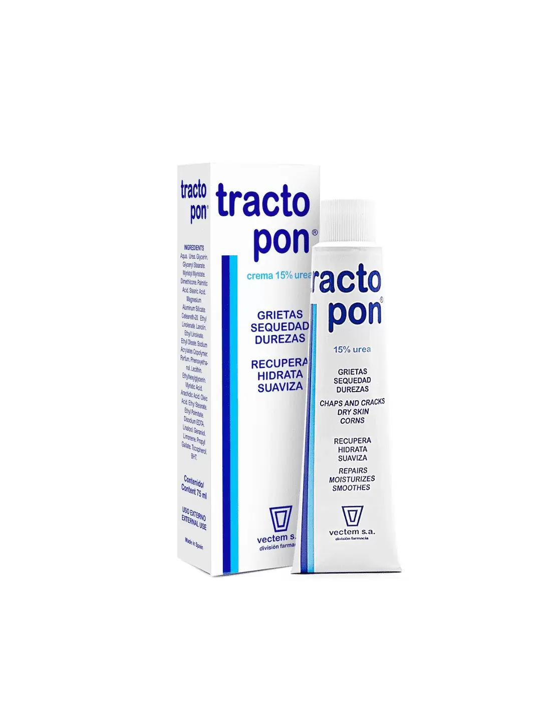 Tractopom 15% Urea Cream is an intensive treatment designed to hydrate and repair extremely dry and cracked skin. With its high concentration of urea, this cream penetrates deeply to soften rough patches, making it ideal for use on elbows, knees, feet, and hands. Perfect for daily care of dry and damaged skin.