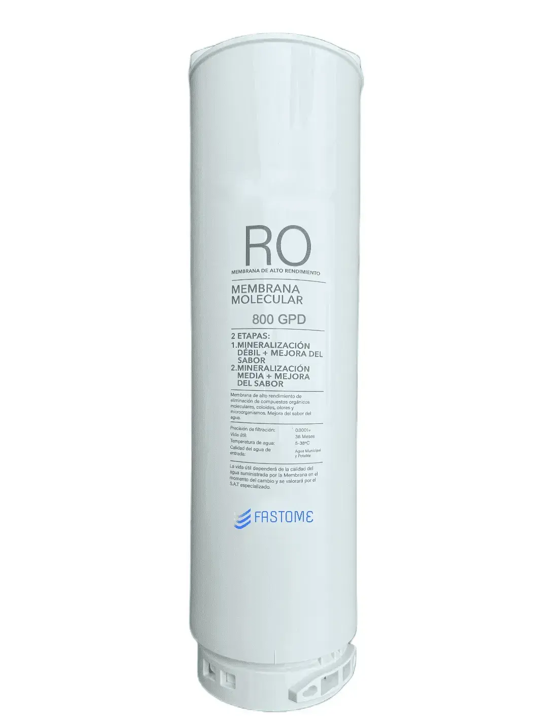 A membrana de 800 GPD para osmose reversa Fastome foi desenvolvida para garantir filtração de alto desempenho e grande volume de produção contínua. Com um sistema avançado de mineralização dupla (leve + média), proporciona água de excelente sabor, pura e segura para uso doméstico ou profissional.