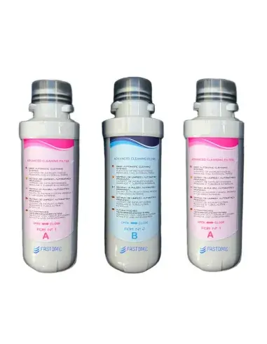 Este pack de filtros oficiais Fastome inclui os cartuchos A, B e C, essenciais para manter o modo de auto‑limpeza interna ativo nos purificadores multifuncionais Fastome. Garante a limpeza profunda do sistema, protege os componentes internos e assegura um fluxo de água estável.