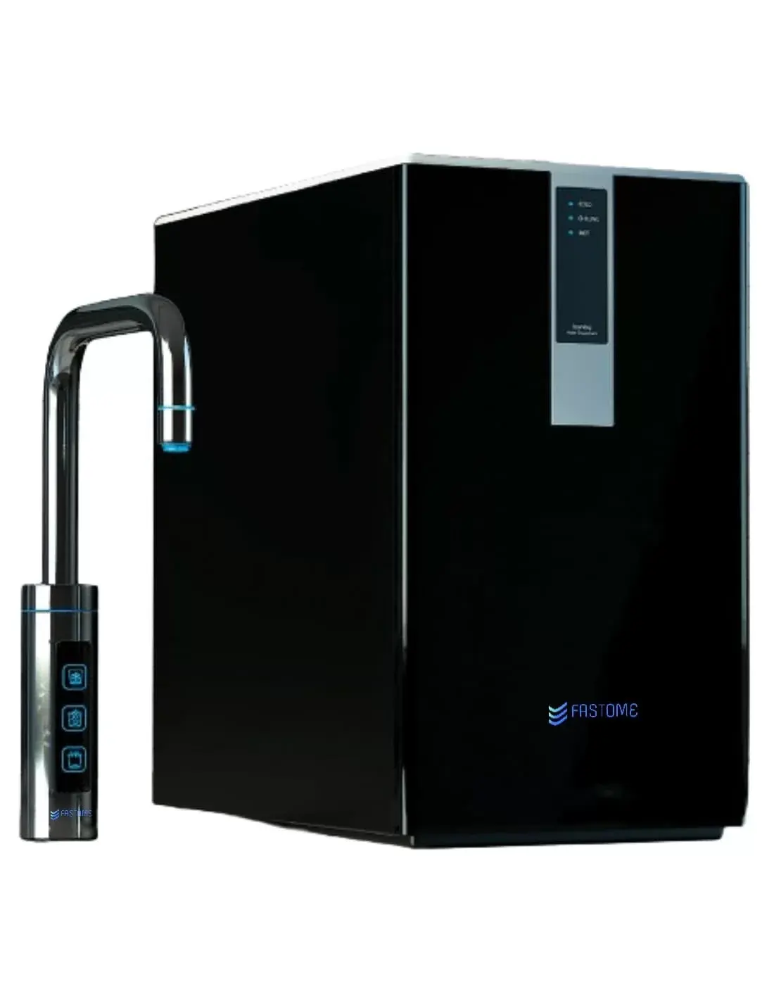 Vista frontal do dispensador debaixo da bancada profissional FASTOME com ultrafiltração, UV e gás